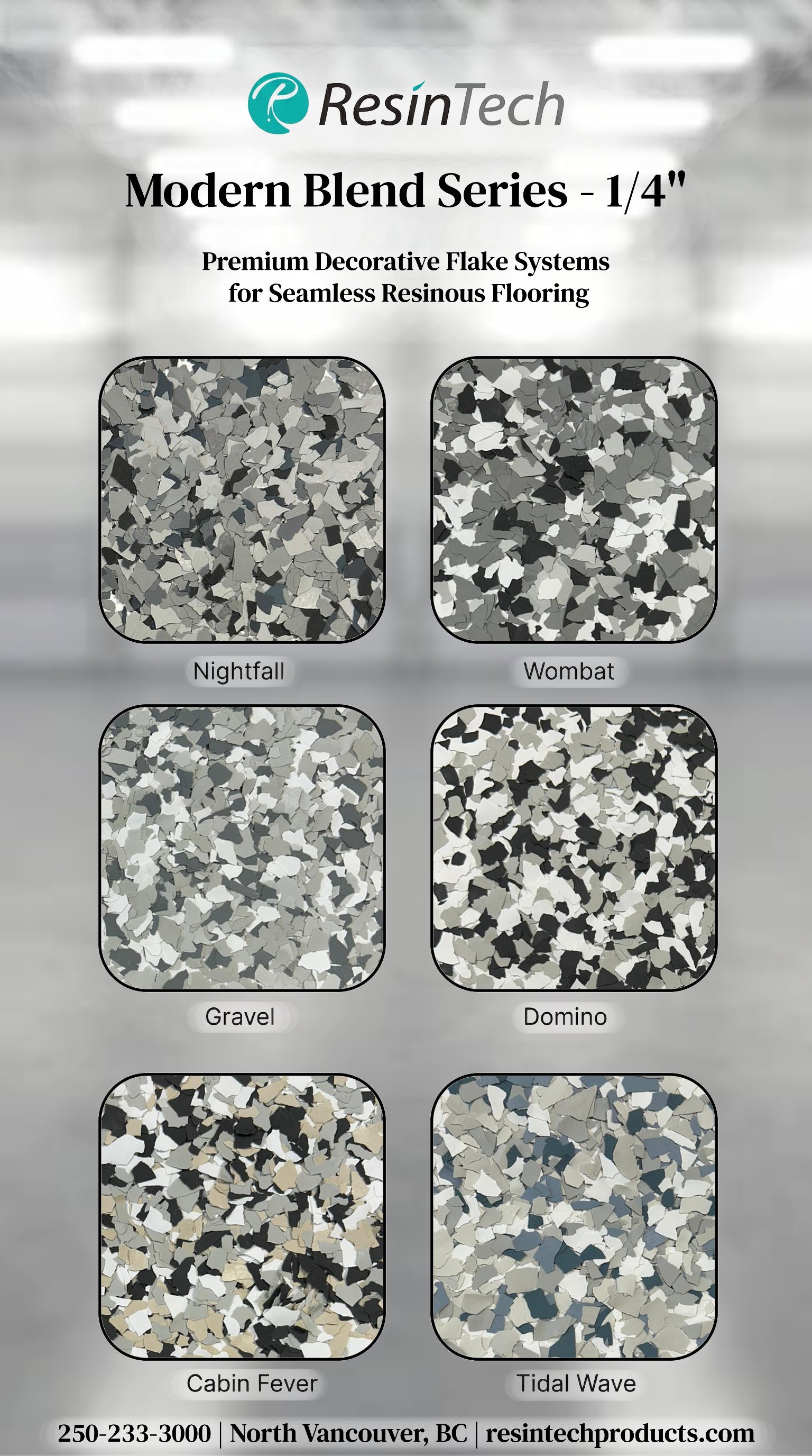 Resintech 1/4'' Blend Flake System (40 LBS/Box) Blend Flakes are designed to use with the concrete floor coatings as a decorative systems and can be used for any commercial and residential floor. You can use the flakes with our Transparent Universal Epoxy (TUE) or High Performance Polyaspartic (HPP) with the option...